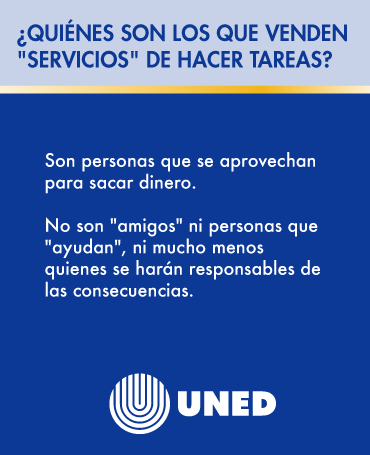 Recordá que quienes ofrecen hacer tareas atentan contra tu formación y tu integridad académica. Informate y protegé tu aprendizaje.