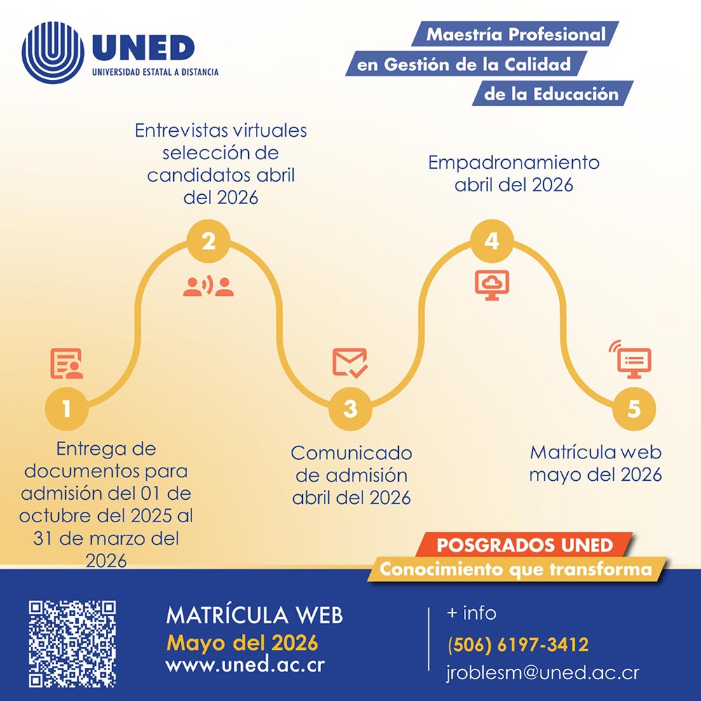 La Maestría Profesional en Gestión de la Calidad de la Educación, anuncia la apertura de su segundo cohorte 2026