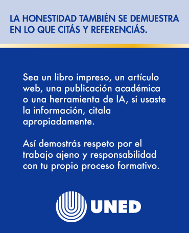 En la UNED creemos que tu integridad académica y tu esfuerzo constante son la base de tu éxito estudiantil. Durante estas semanas te vamos a compartir consejos, recursos y reflexiones para que sigás creciendo con ética, compromiso y confianza en tu trayectoria universitaria. ¡Acompañanos en esta campaña y construyamos una cultura de honestidad y logro académico!