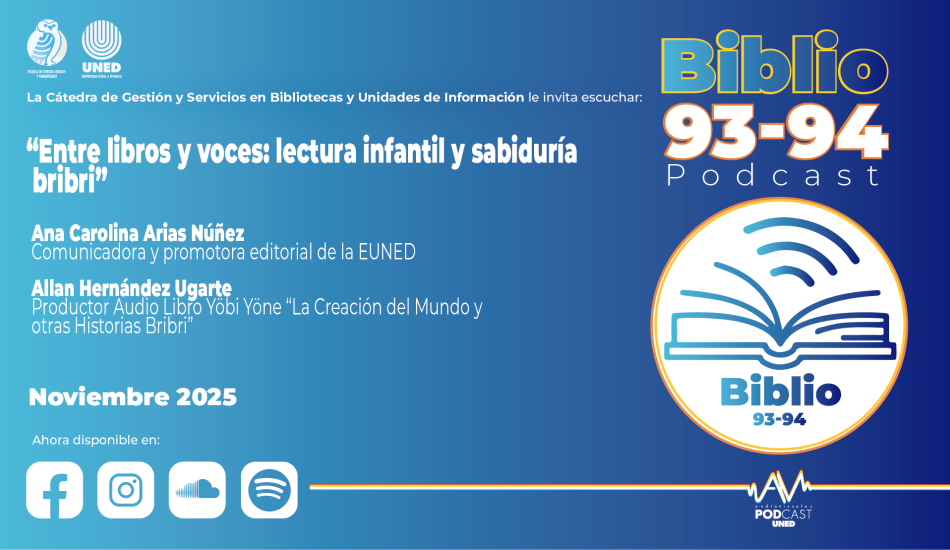 Ana Carolina Arias narra el origen, impacto y premios de la campaña, que incluye animación, testimonios de niños y actividades creativas para fortalecer la lectura. Destaca el reconocimiento SIREICU 2025 y el valor del trabajo en alianza con bibliotecas, escuelas y el MEP. En el segundo bloque les presentamos: “Yöbi Yöne: La creación del mundo y otras historias bribris”. Allan Hernández explica cómo surgió el audiolibro, la producción de parte de Audiovisuales UNED, el proceso de grabación en Talamanca y la relevancia de conservar la voz y narrativa de la sabia Juanita Segundo Sánchez como legado cultural.